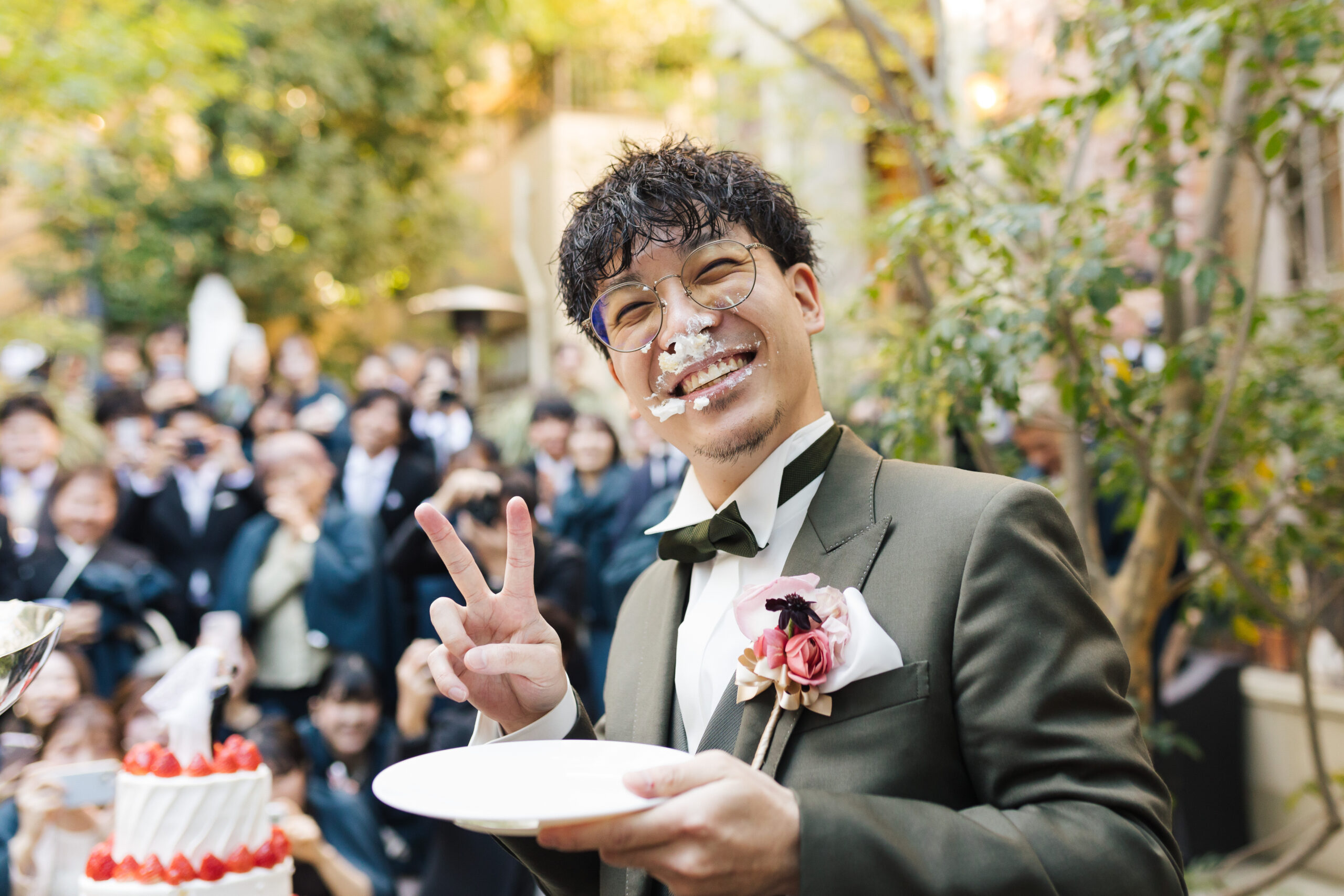ケーキを頬につけられて思わず笑ってしまうその表情も。